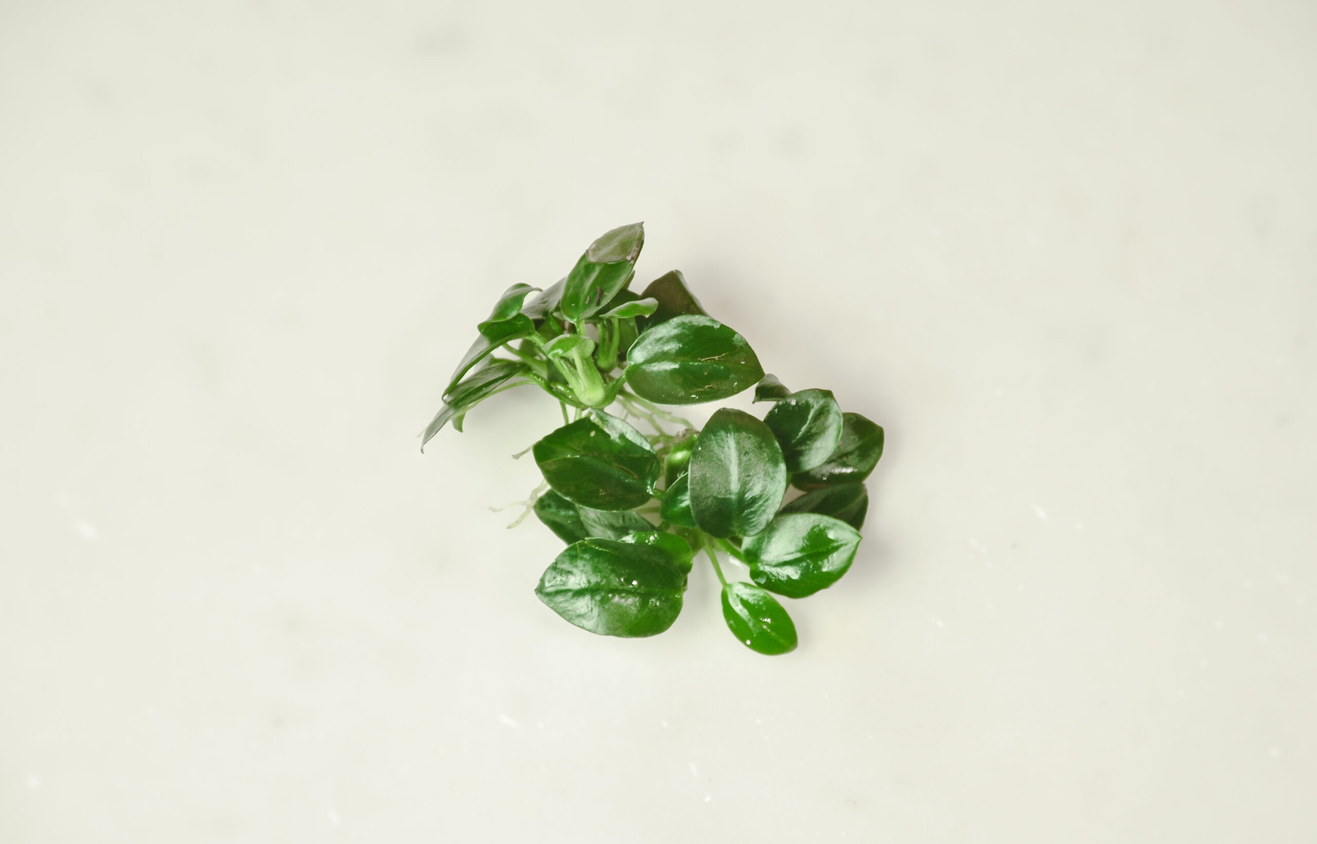 アヌビアス・ナナの超小型品種で、葉の大きさは1〜2cm程度。通常のナナと同じ丈夫さを持ちながら、ミニチュアのような可愛らしい姿が魅力。小型水槽やボトルアクアリウムで活躍します。