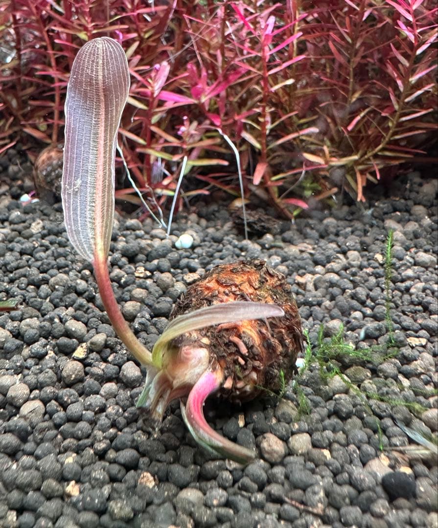 葉がレース状に透ける希少水草。現物発送。球根含め約7cm。状態良好・芽が出始め。